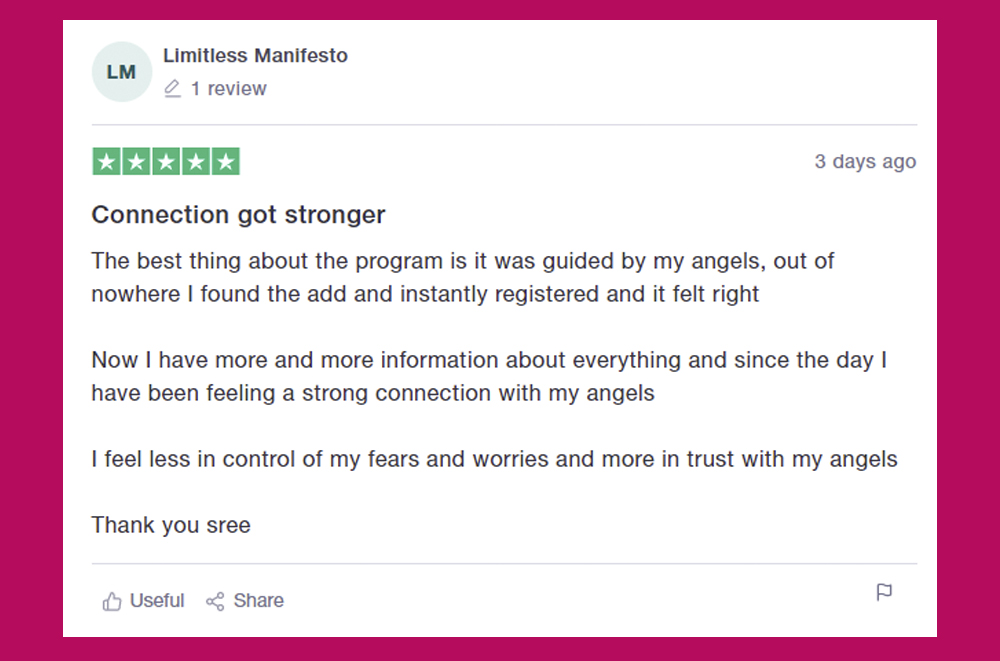 Wow.. Amazing lovely experiences.. what else is possible ❤👼👼👼💃. I was holding a angel knot in my hand and they guided me to your program. Now, I am connected to you for life for sure. 😊