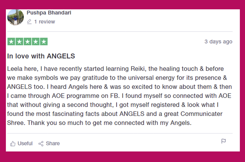 Hi Shree, few days back I had seen a youtube video on how to connect with Angle n I tried to do it but it further confused me and I asked my Angels to show me the way and right after that I saw your post. This why I enrolled for this program. Now, Angels are always around me and they even helped me overcome my heartbreak. Love u my sweet angle ❤ 👍❤ there are a lot of things actually I have experienced since last 7-8 month which I have been ignoring but it is now time to get set go.... Thank you Shree for this wonderful course 😊